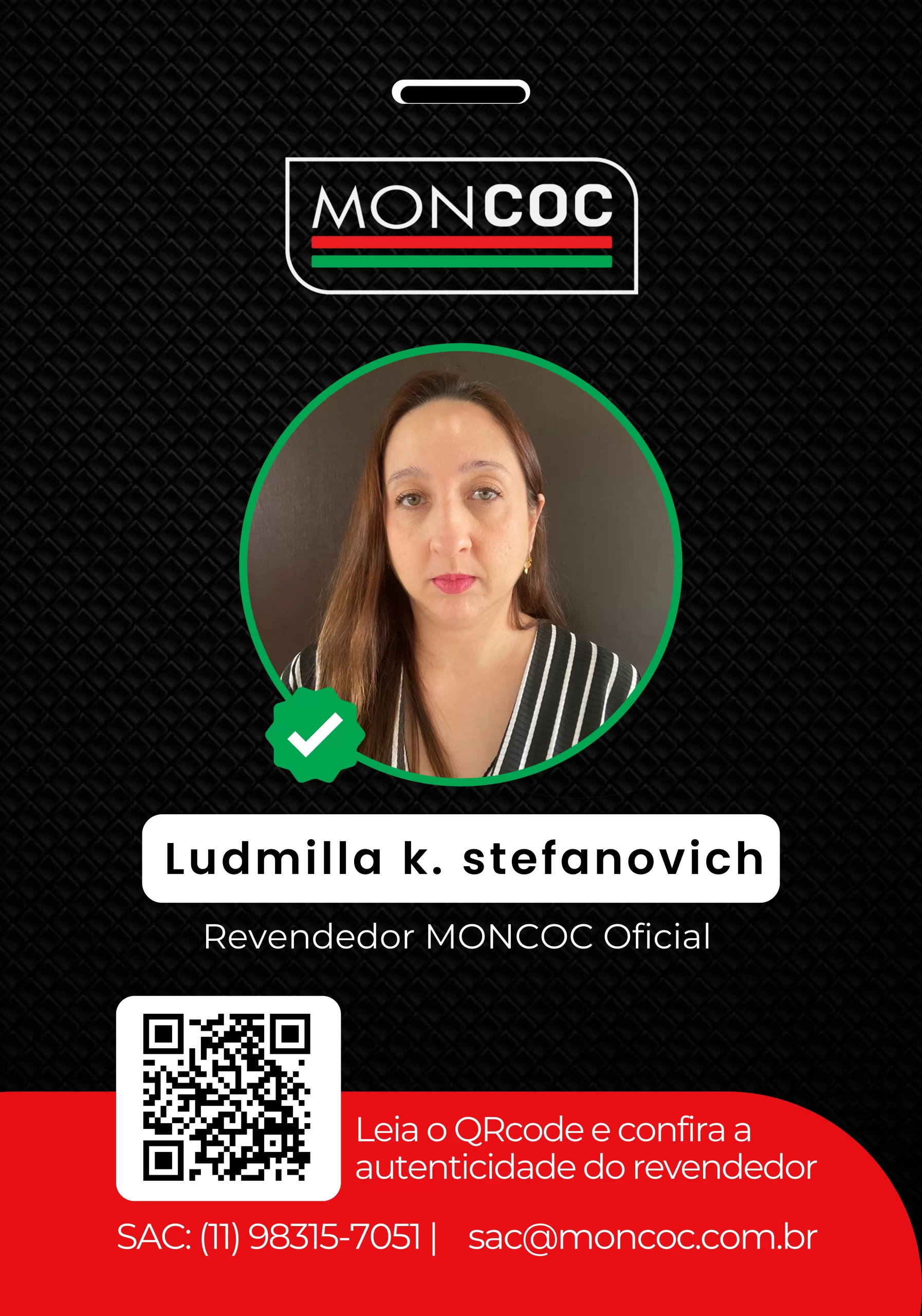 • Crachá MONCOC: Todo revendedor oficial possui um crachá personalizado com um código único.
