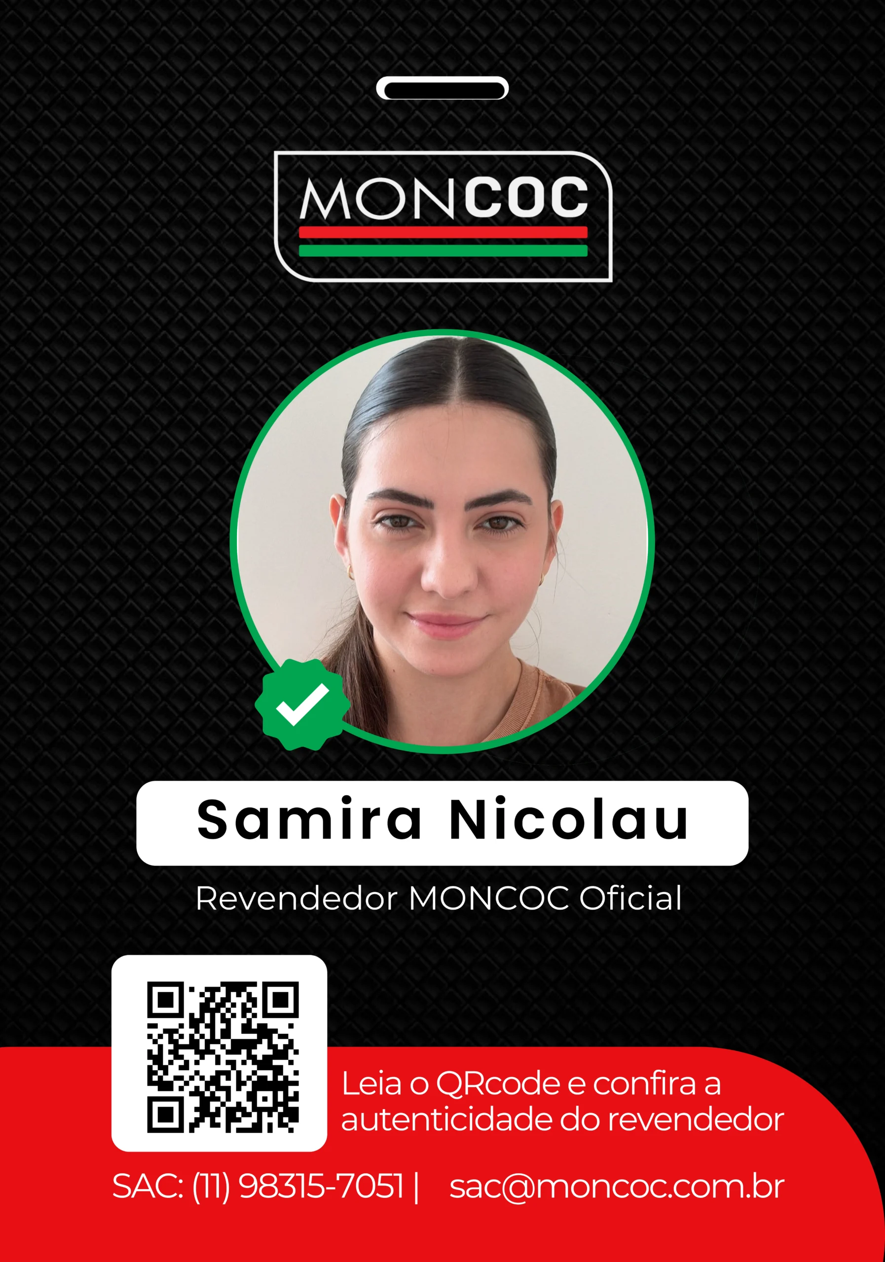 • Crachá MONCOC: Todo revendedor oficial possui um crachá personalizado com um código único.